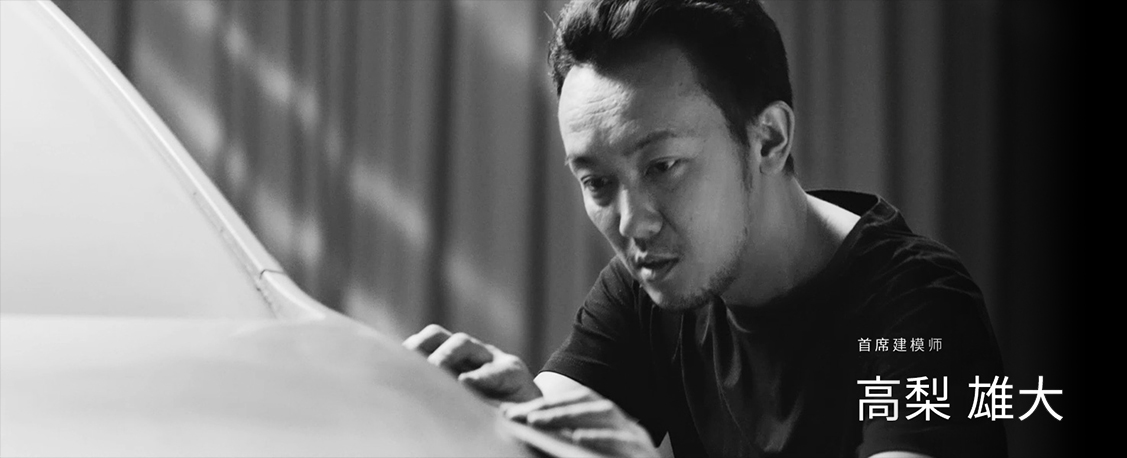 “表面的光影流转”指的是能够根据欣赏地点、 时间和天气情况展现出各种各样的表情。 为了实现这种造型,我们这些建模师每天都在认真思考 是否在刮除粘土时最后的将最后的0.1mm作为造型保留还是刮除。 有时我们追求的水平甚至达到了无法在现场使用测量仪器进行测量的地步。 如果切刮完美,那么连刮下来的泥片也会保持美丽的形状。 我们相信,制模时精心打造至0.1mm的程度,一定可以赋予造型以生命, 创造出一辆具有生命力的为客户所珍视的汽车。